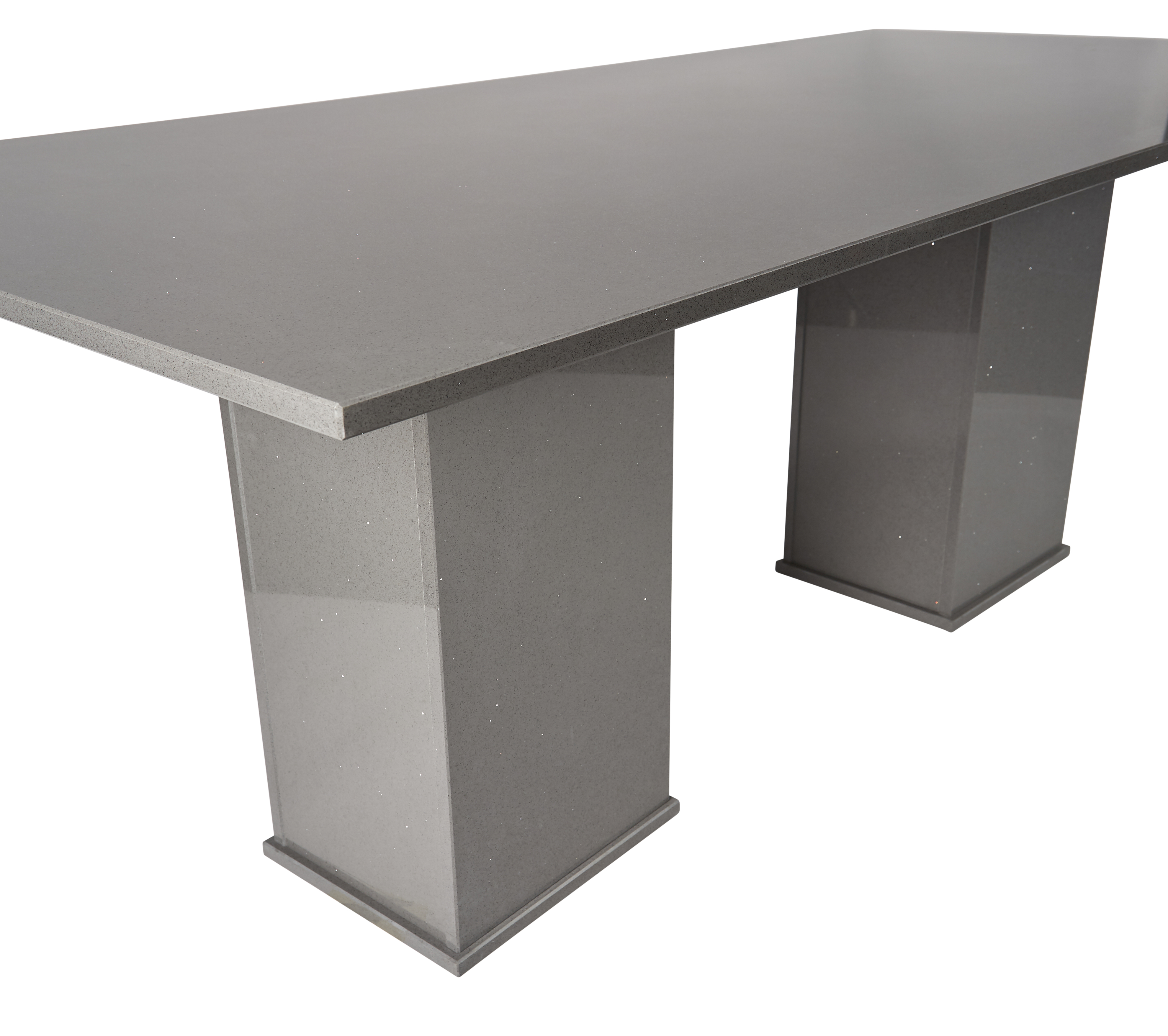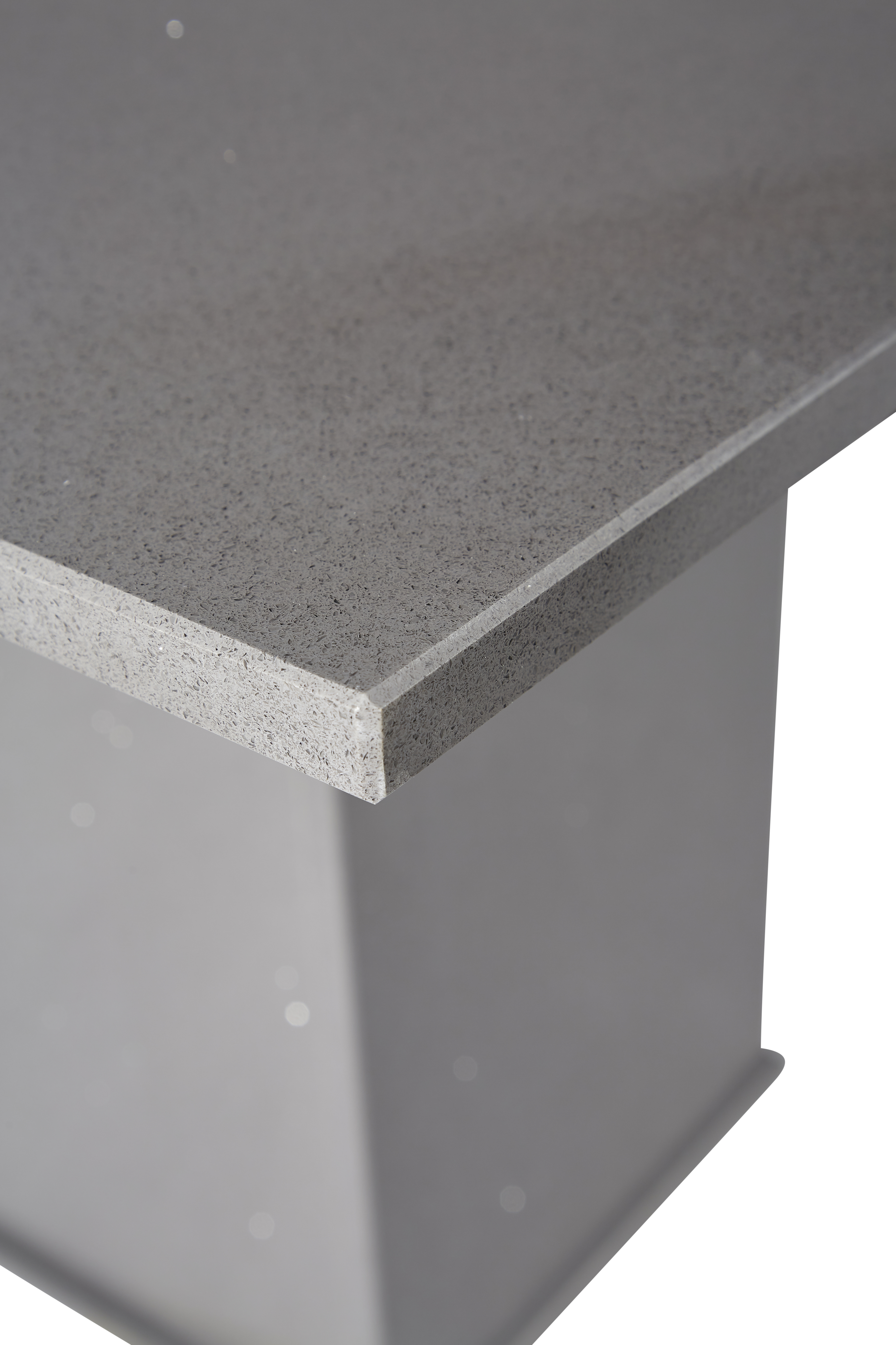Grey Shimmer quartz is a glamorous, mid-grey colour, embedded with intricate, metallic flecks that reflect the light, giving a subtle shimmer to any contemporary dining table.