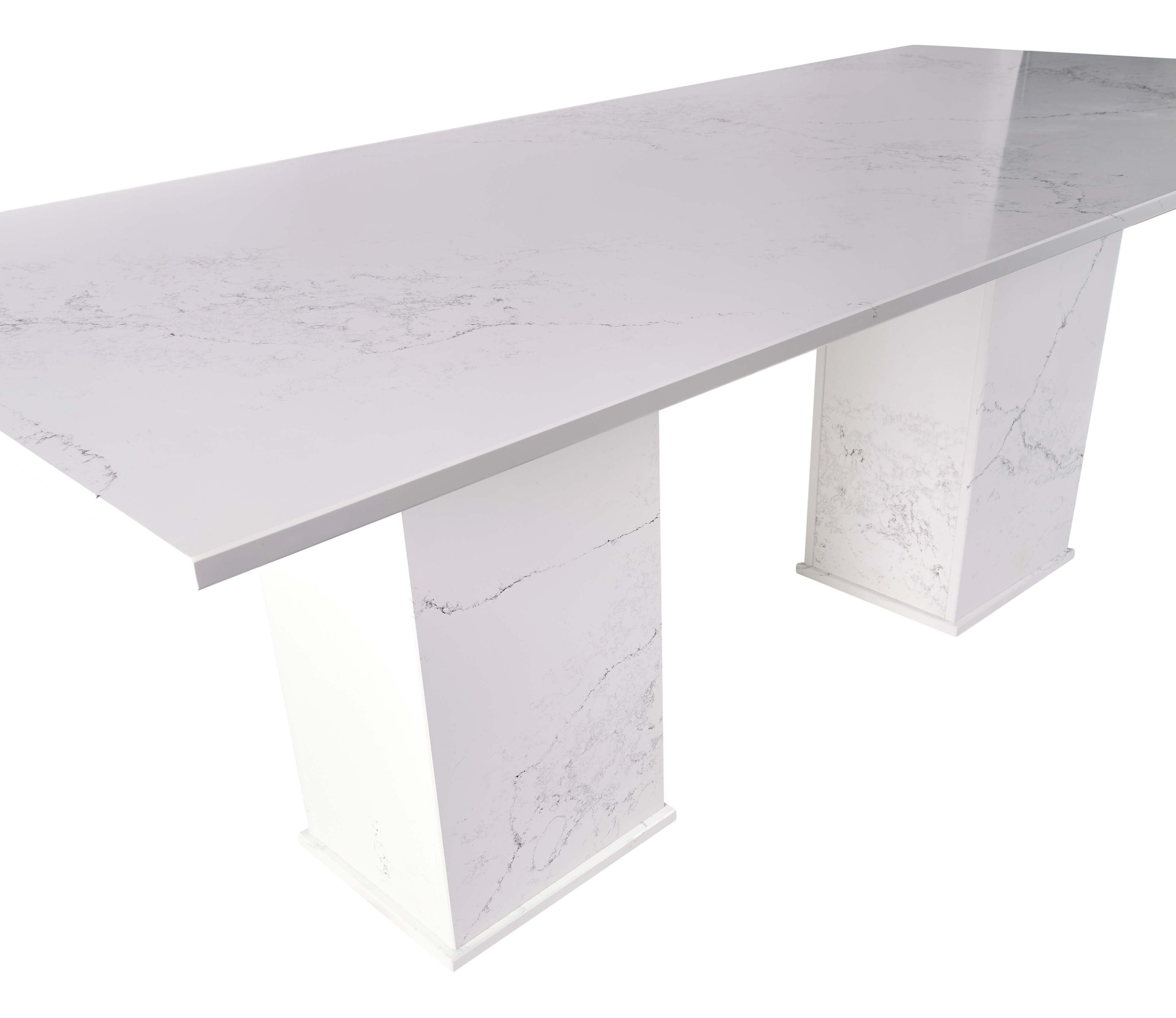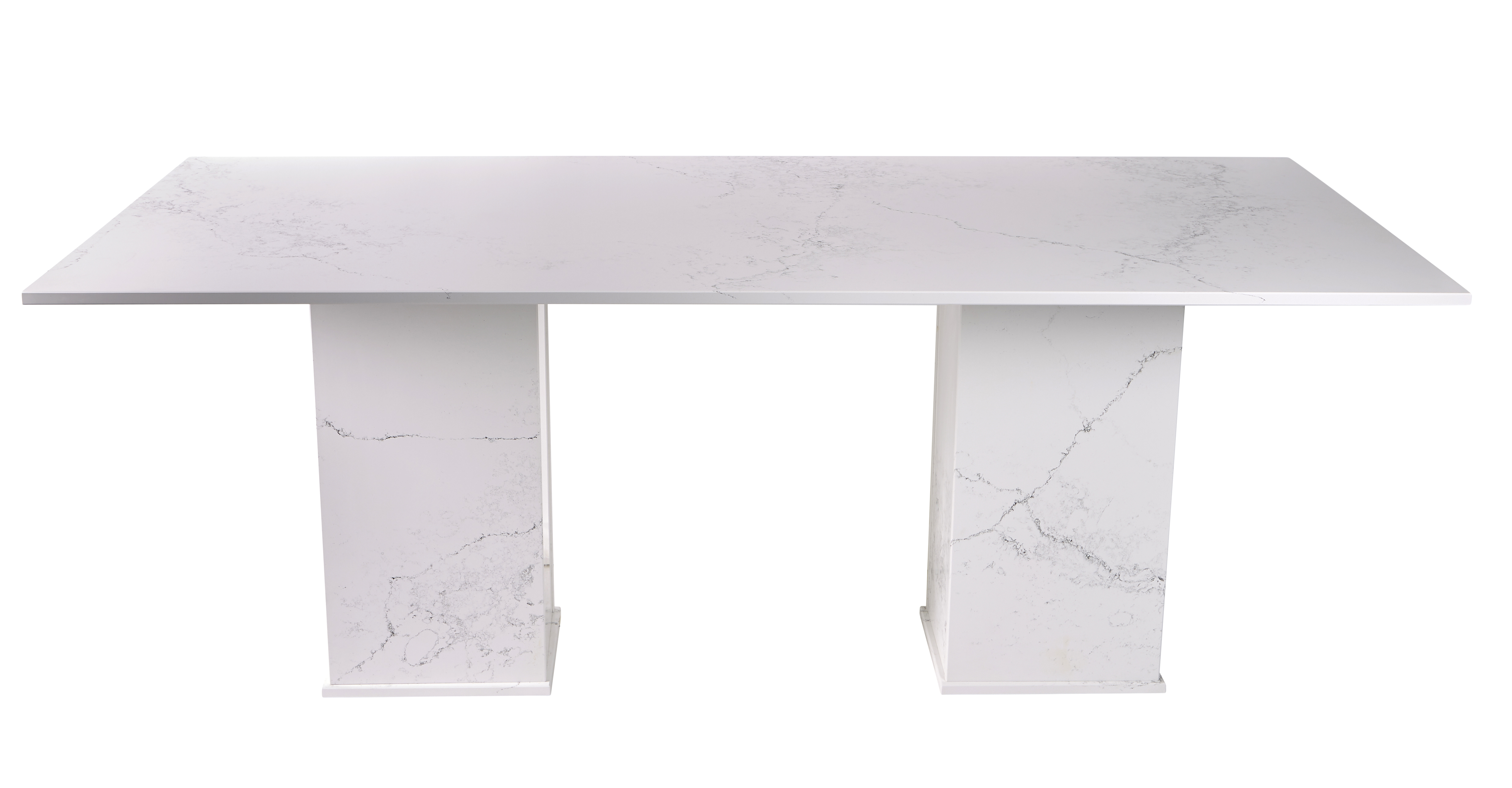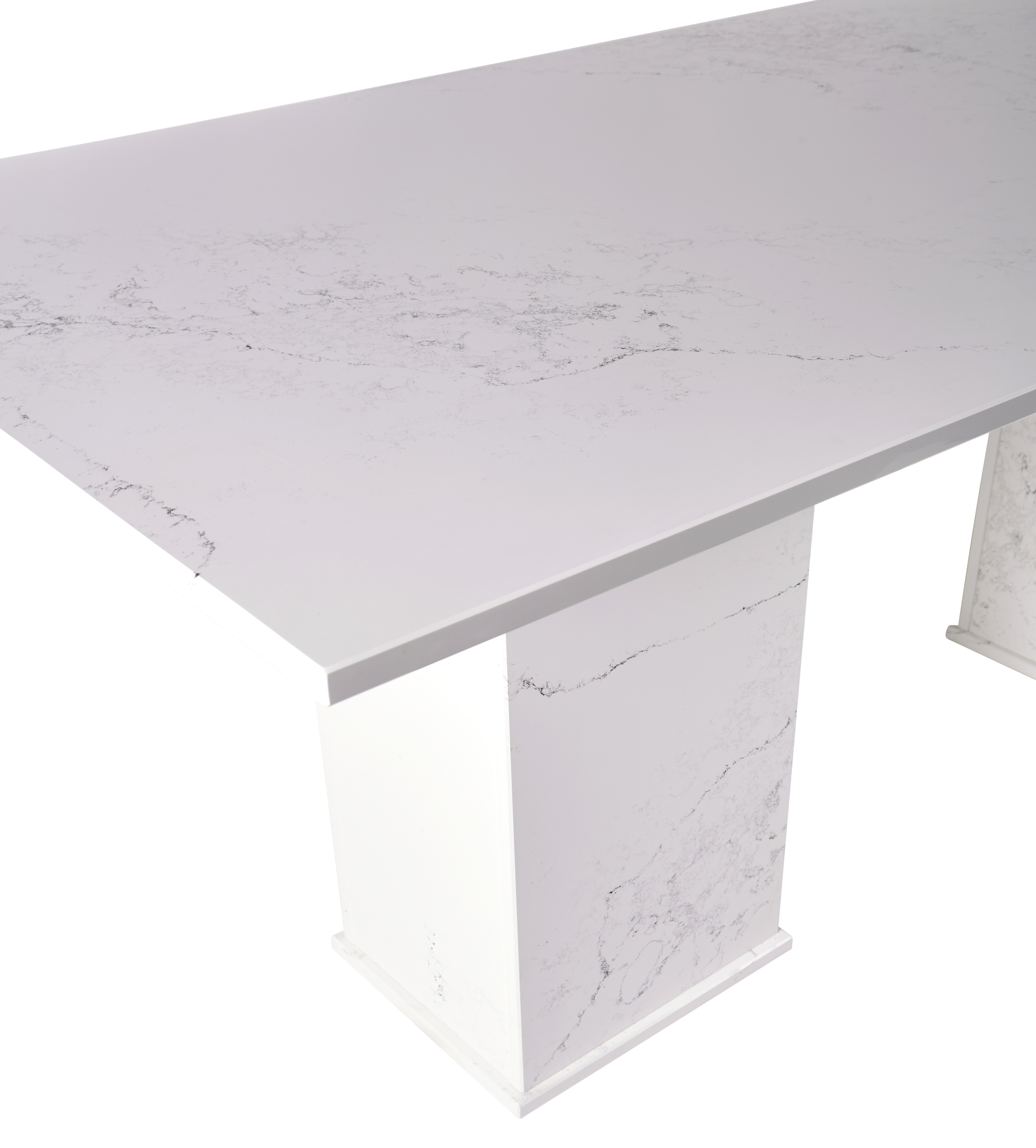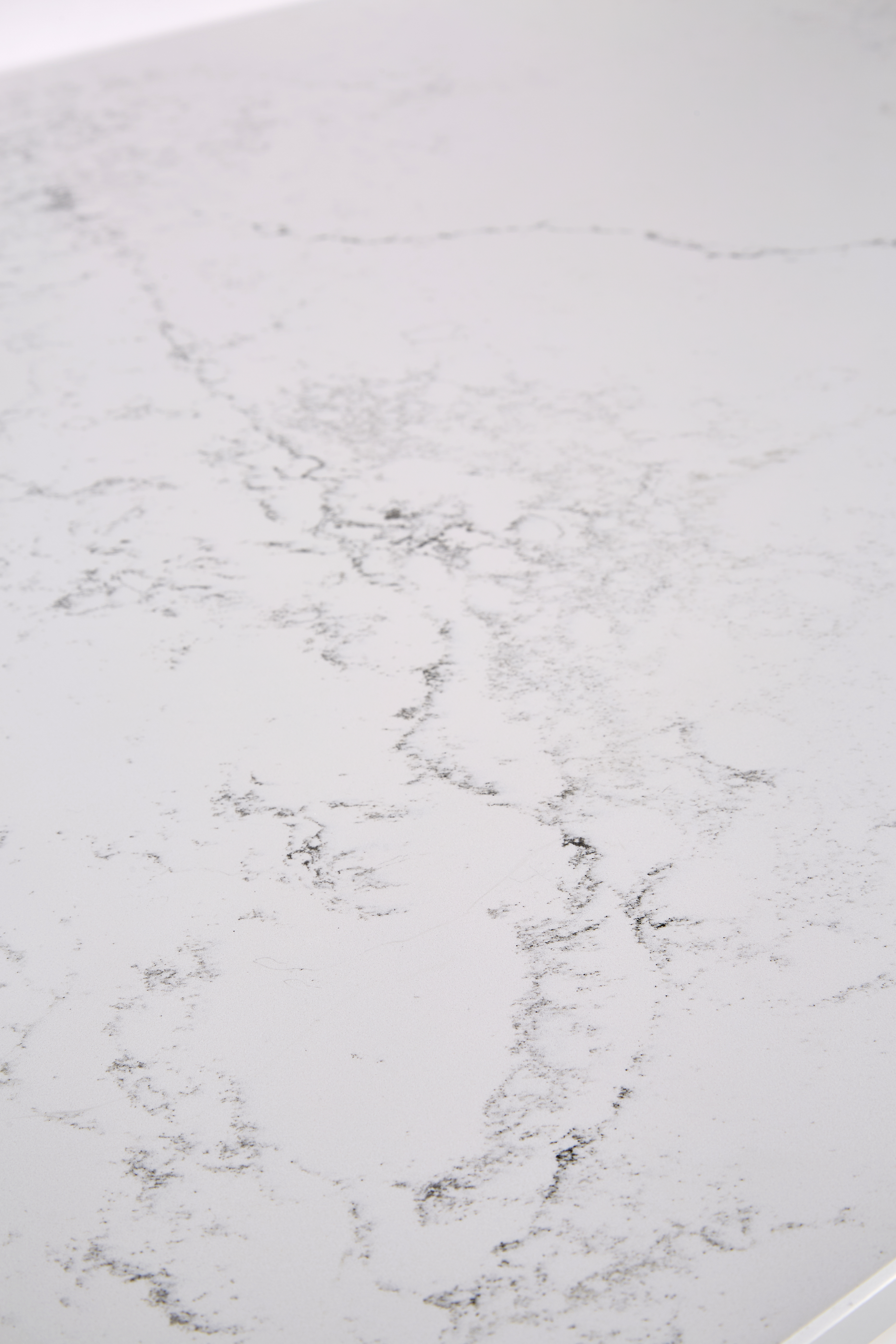 The classical white base of Empira White quartz is luminescent with dramatic, almost-black veins navigating their way across the stone’s surface, creating a beautiful contrast between light and dark.